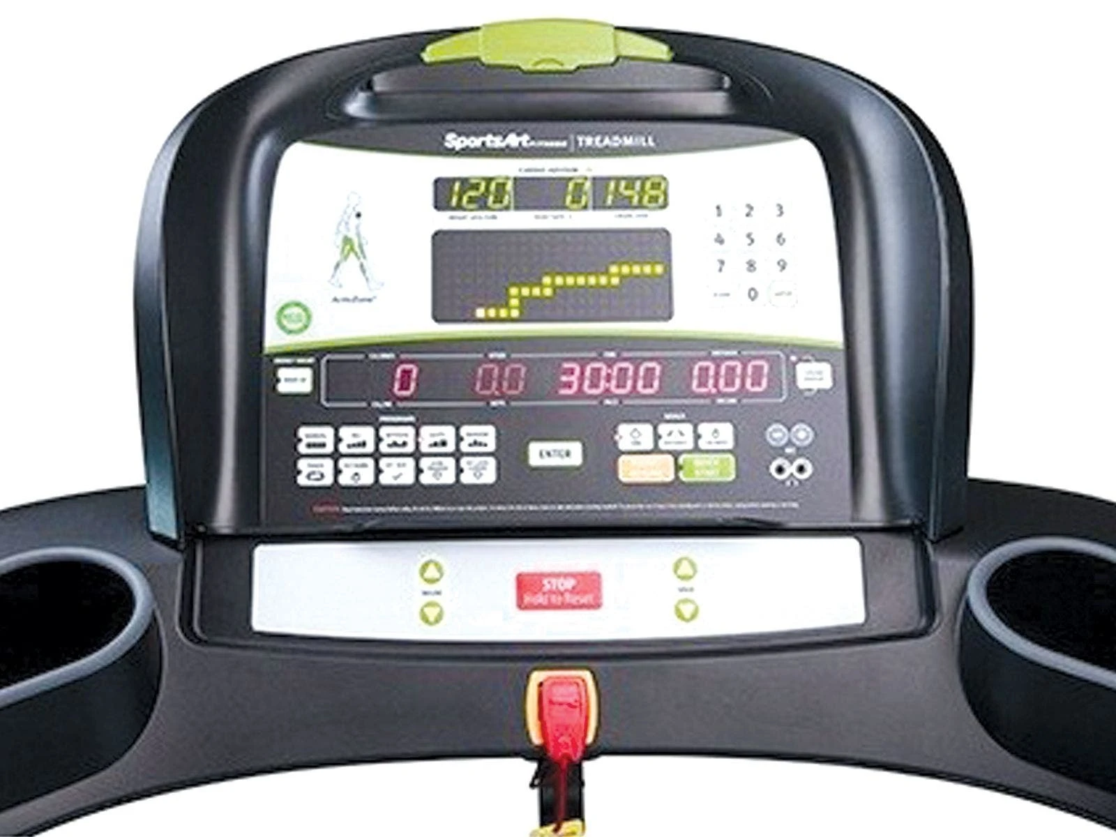 - Console. Tri-color LED console shows speed, distance, calories, METs, incline, pace, heart rate, and active zone.