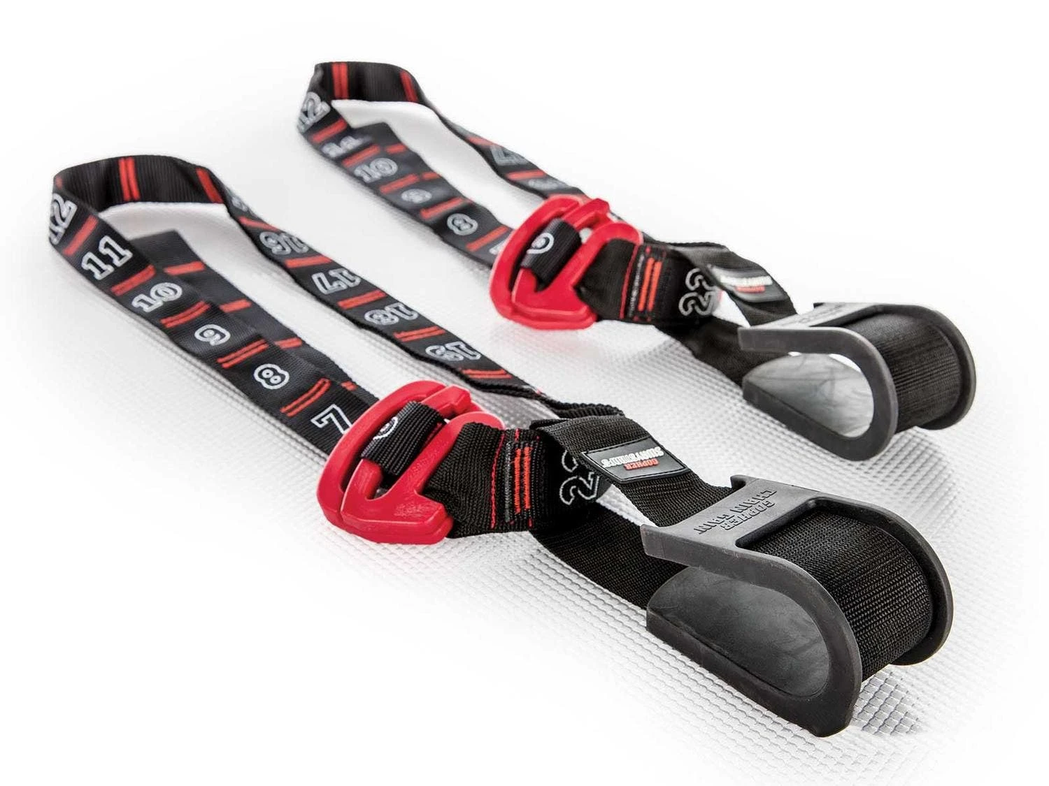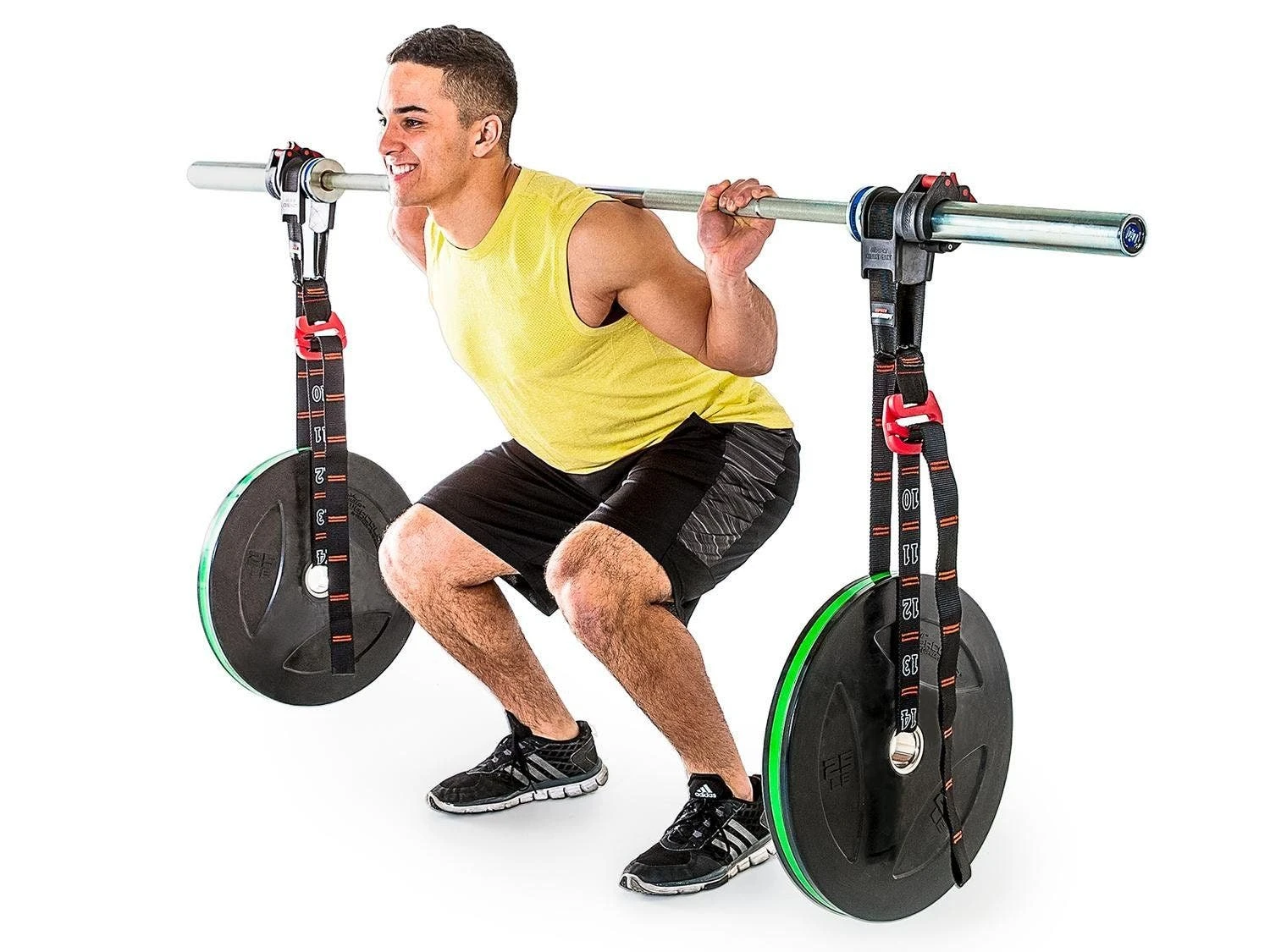 Loop the 5’L nylon strap through a plate insert or kettlebell handle and slip a numbered pocket on the strap’s buckle. Then, slip the strap’s molded-rubber collar on each bar sleeve, suspending the plates below the bar and allowing them to move freely. This creates instability and increases the engagement of core muscles to maintain proper form during squats, overhead presses, and rack carries with bands. Numbered strap loops ensure a quick and accurate adjustment on each side. Each strap holds up to 135 lb. Recommended to use with bar collars.