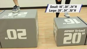 Get an entire plyo set in one durable, lightweight box! Simply flip the Triad for three training heights to accommodate a range of ages, abilities, or exercises! Large height markers are printed on each face of the box to help users easily identify height. Choose between two sizes: