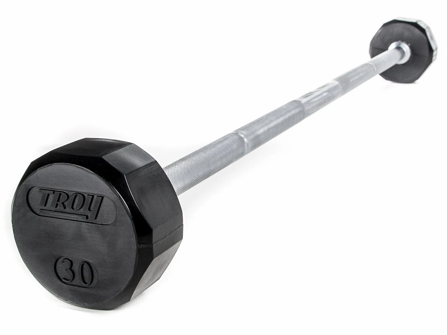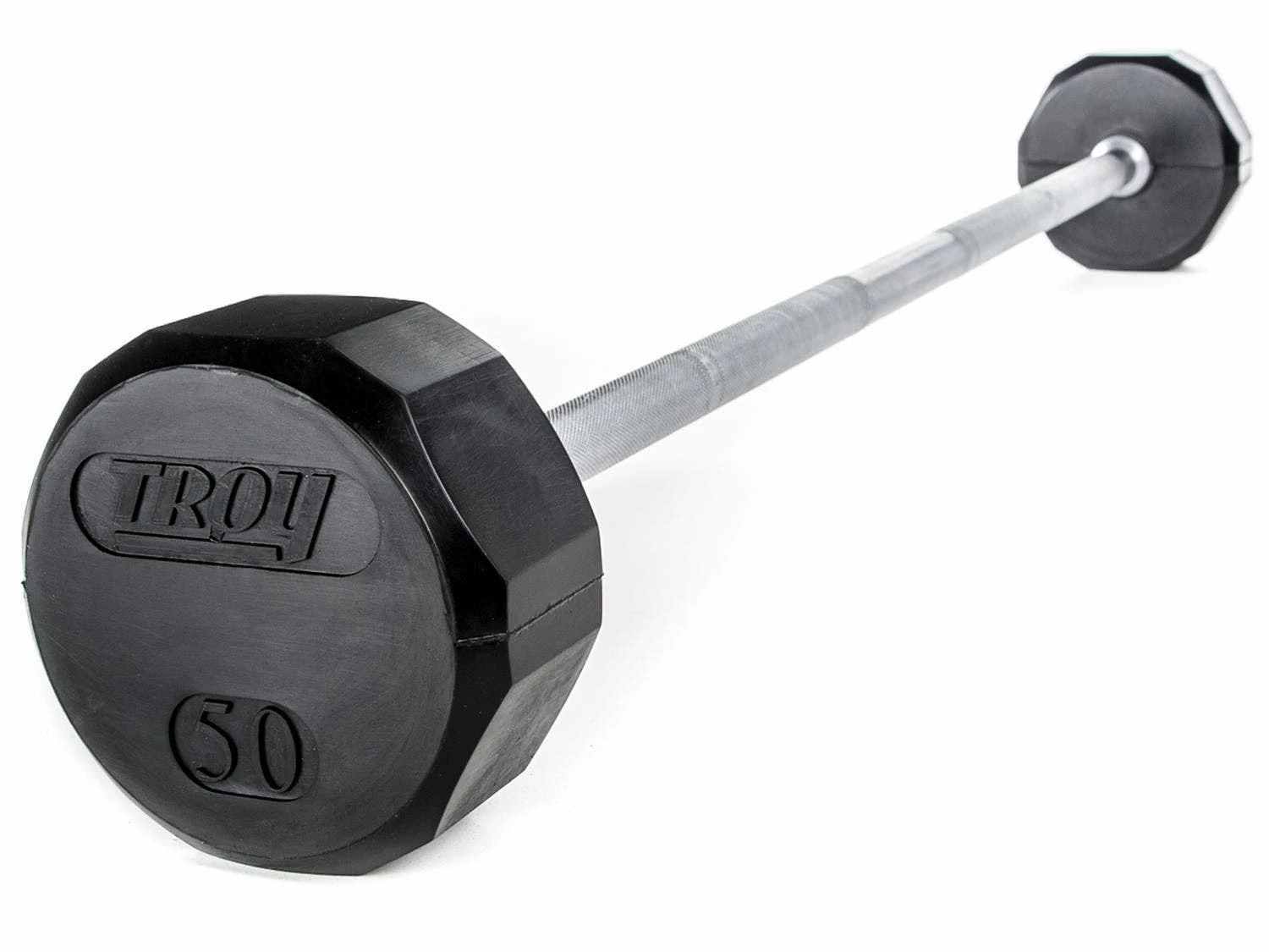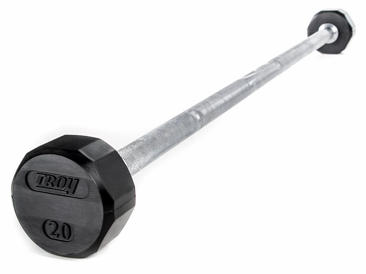 A 12-sided head design eliminates rolling so users aren’t chasing after bars between reps. The chrome-coated steel bar is very durable and features knurling to improve grip, especially as hands sweat.