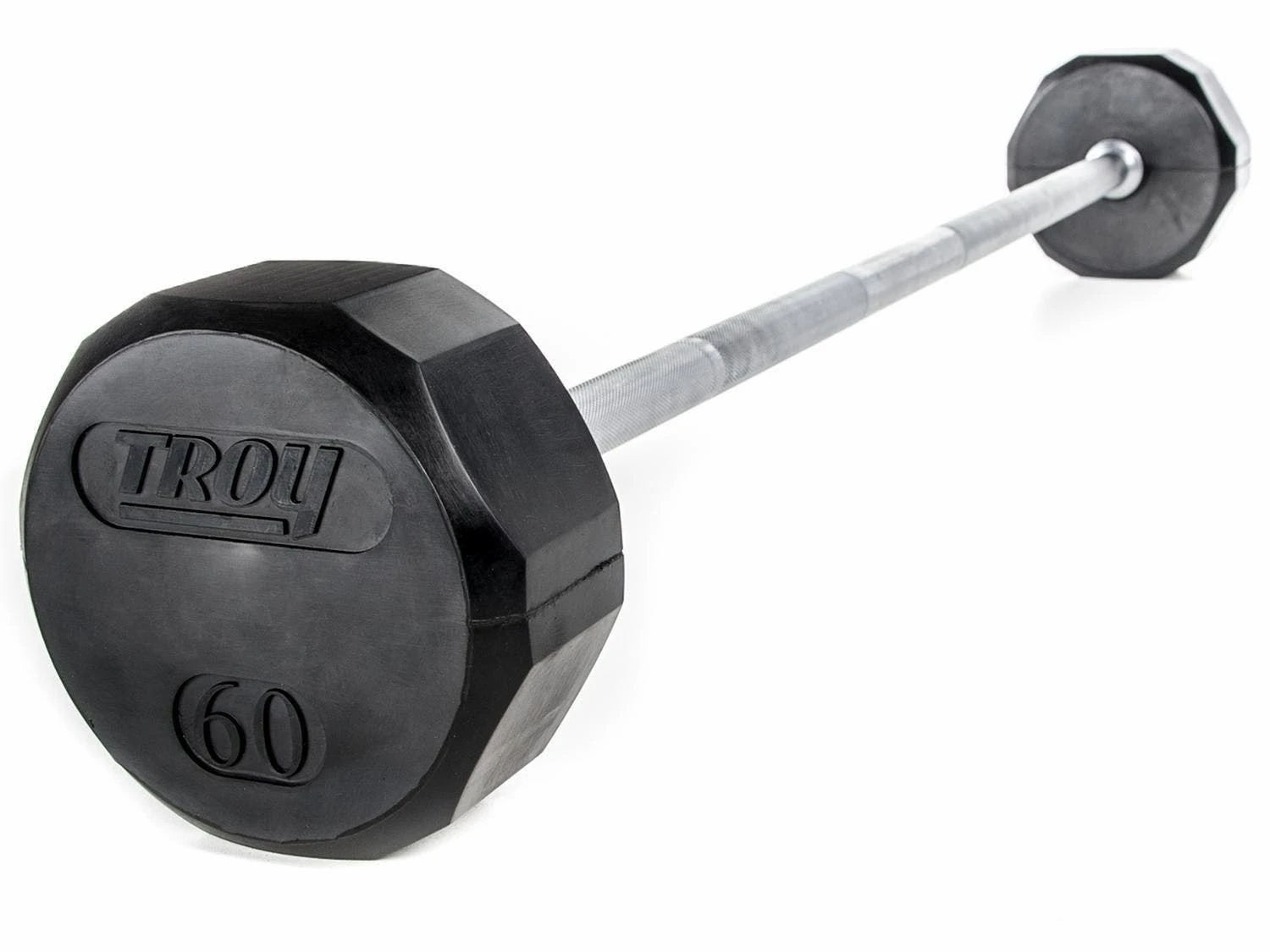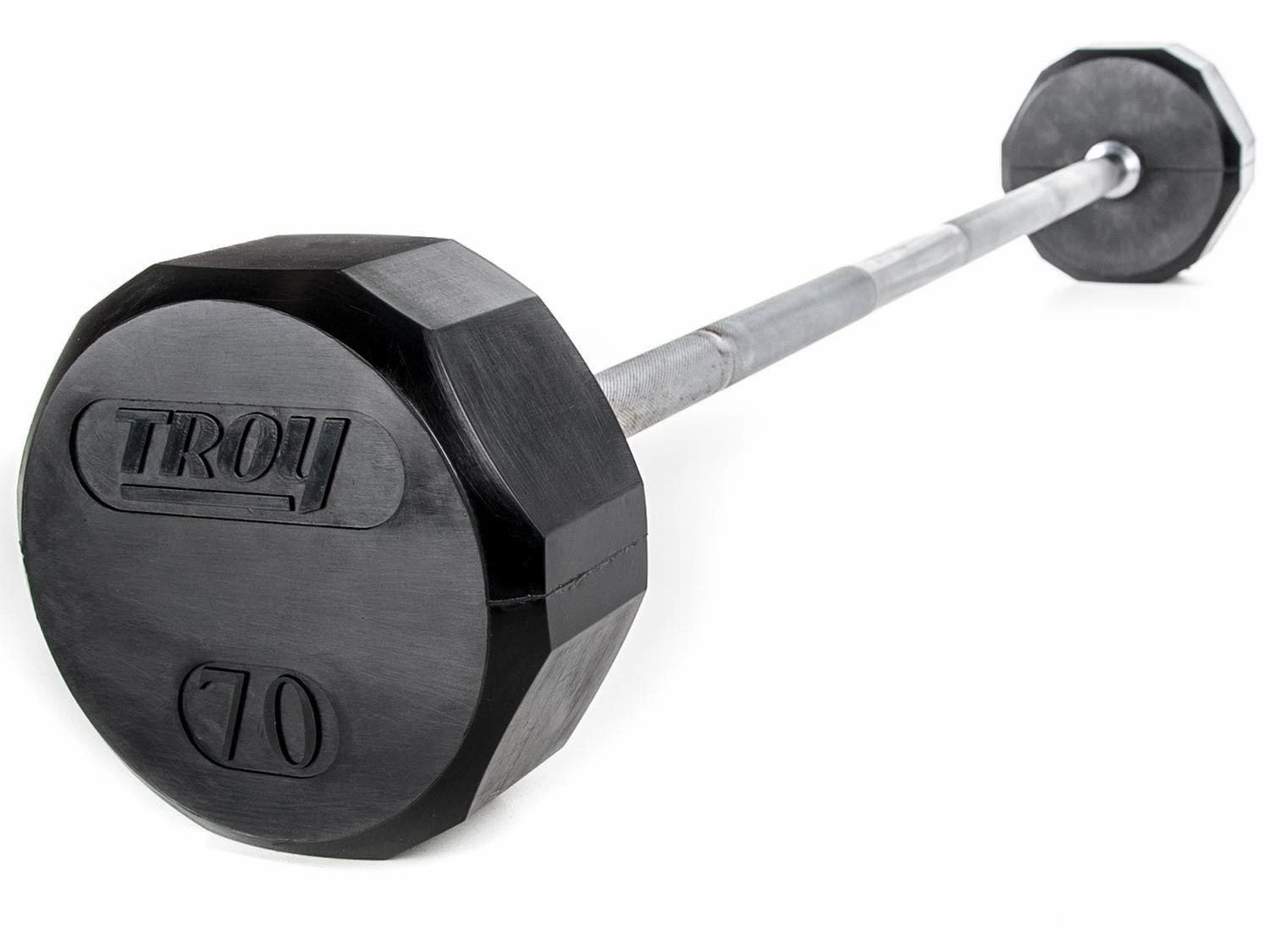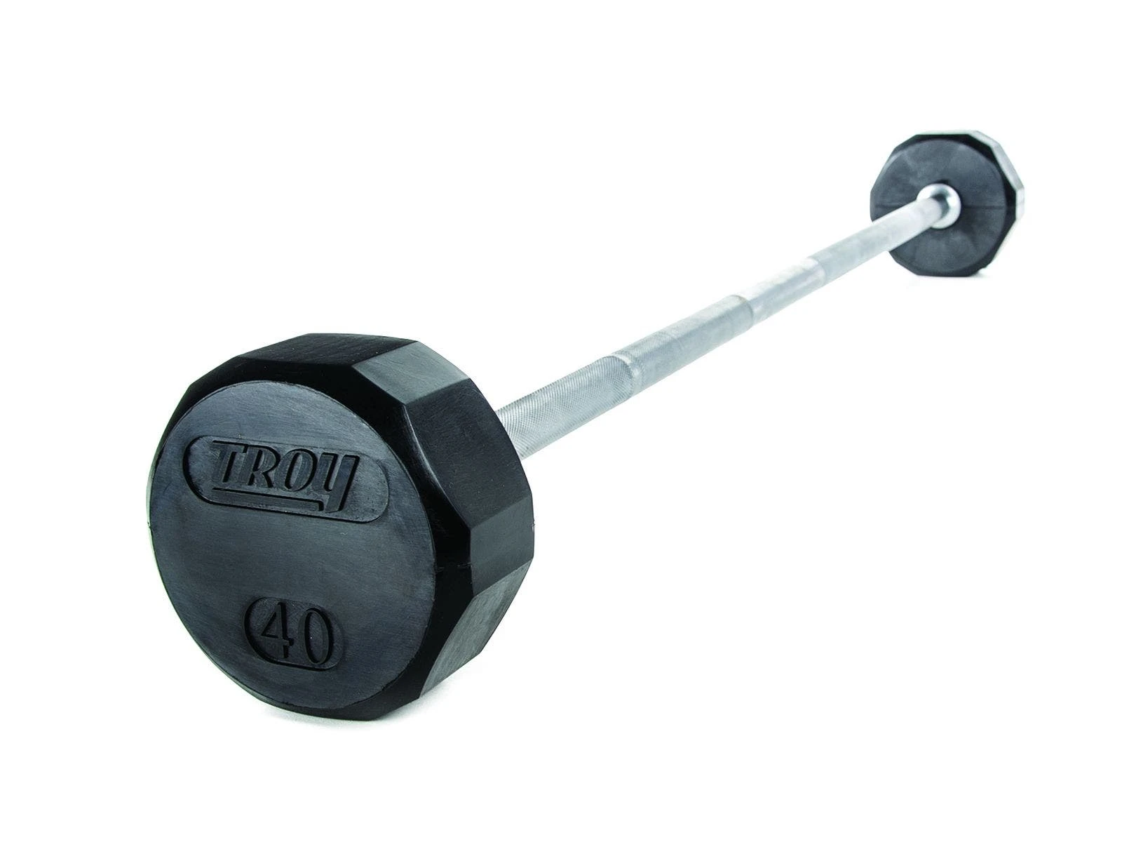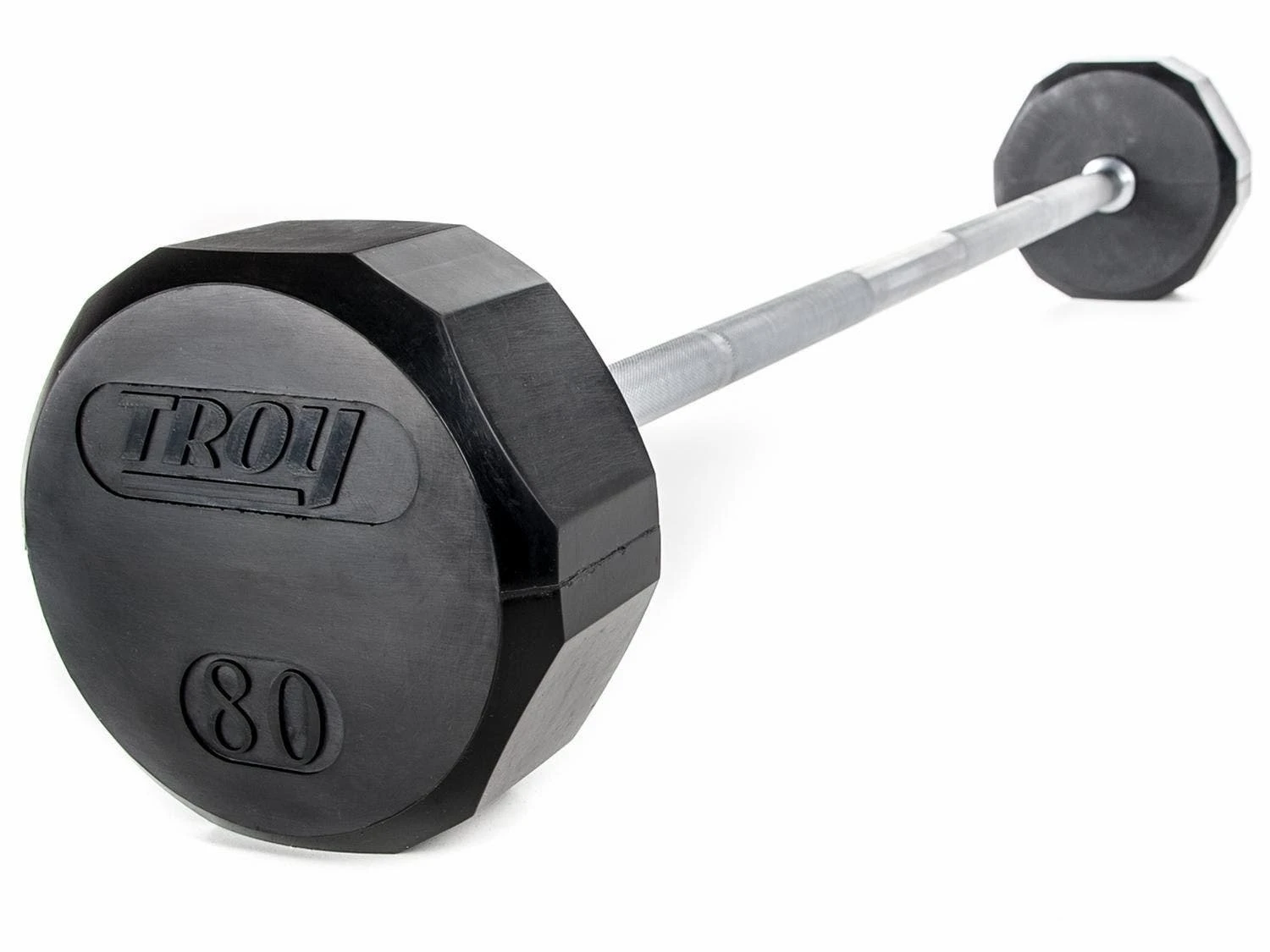 A 12-sided head design eliminates rolling so users aren’t chasing after bars between reps. The chrome-coated steel bar is very durable and features knurling to improve grip, especially as hands sweat.
