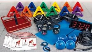 This circuit pack delivers an easy-to-understand introduction to each exercise in the workout. Included training boards show and explain movements for each piece of equipment at the station, allowing for self-driven learning. Each board includes large, vivid images of start and stop positions as well as clear step-by-step directions. Teacher cards further explain the movements and show how to efficiently set up the class for best results.