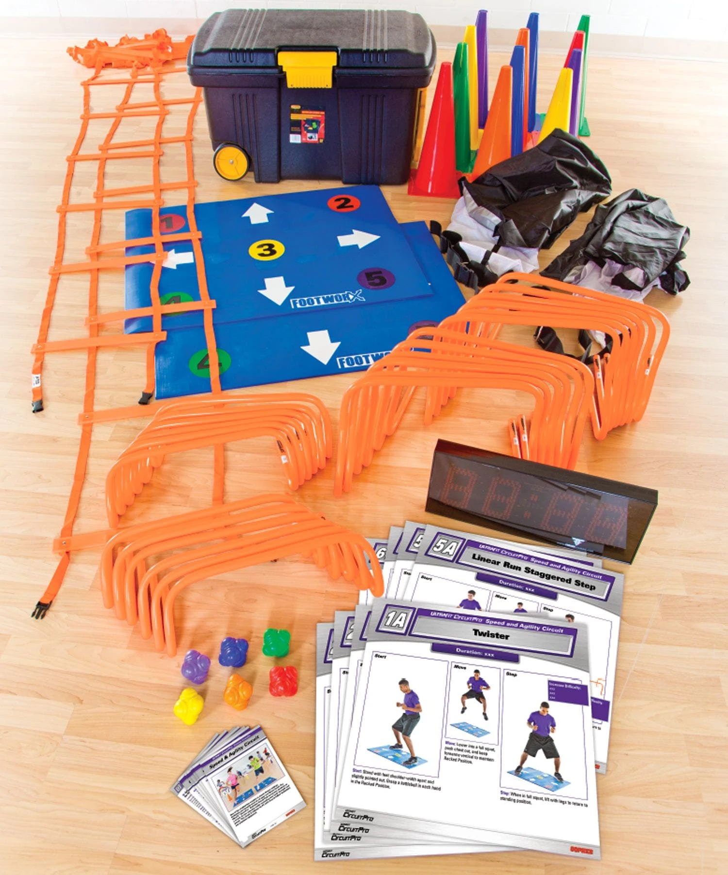 No more scrambling to gather the equipment you need for agility training—this pack includes everything needed to implement an efficient and effective circuit to accommodate an entire class. Including agility ladders, hurdles, reaction balls, and more, you’ll be able to run various circuits that challenge your students’ foot speed, reaction time, coordination, and more.