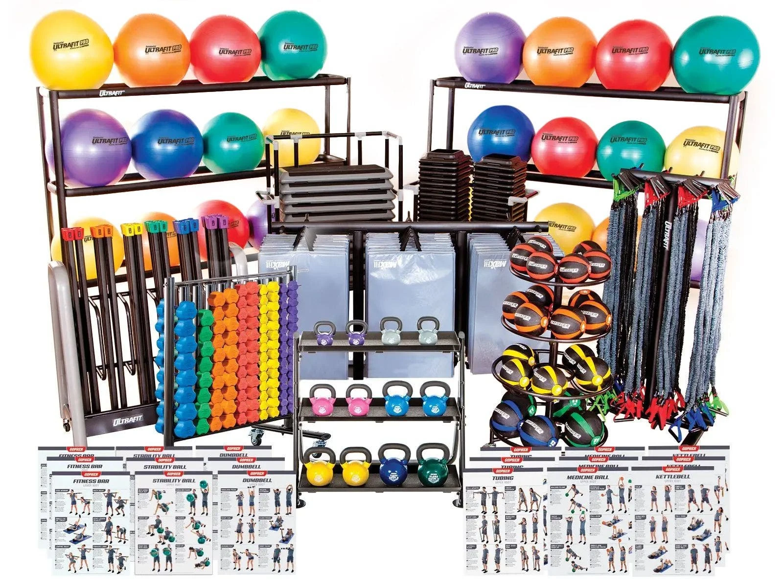 The next step up from our UltraFit Professional Total Fitness Room—complete with upgraded equipment and a wider selection of items—this is the most comprehensive pack of fitness equipment for schools we offer. Within it you’ll find free-weights, stability equipment, resistance training items, cardio accessories, and more, designed to teach every aspect of physical fitness in a way that’s easy to learn and emulate.