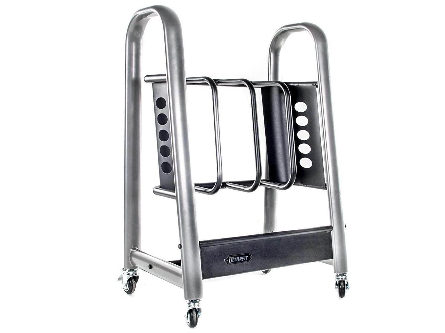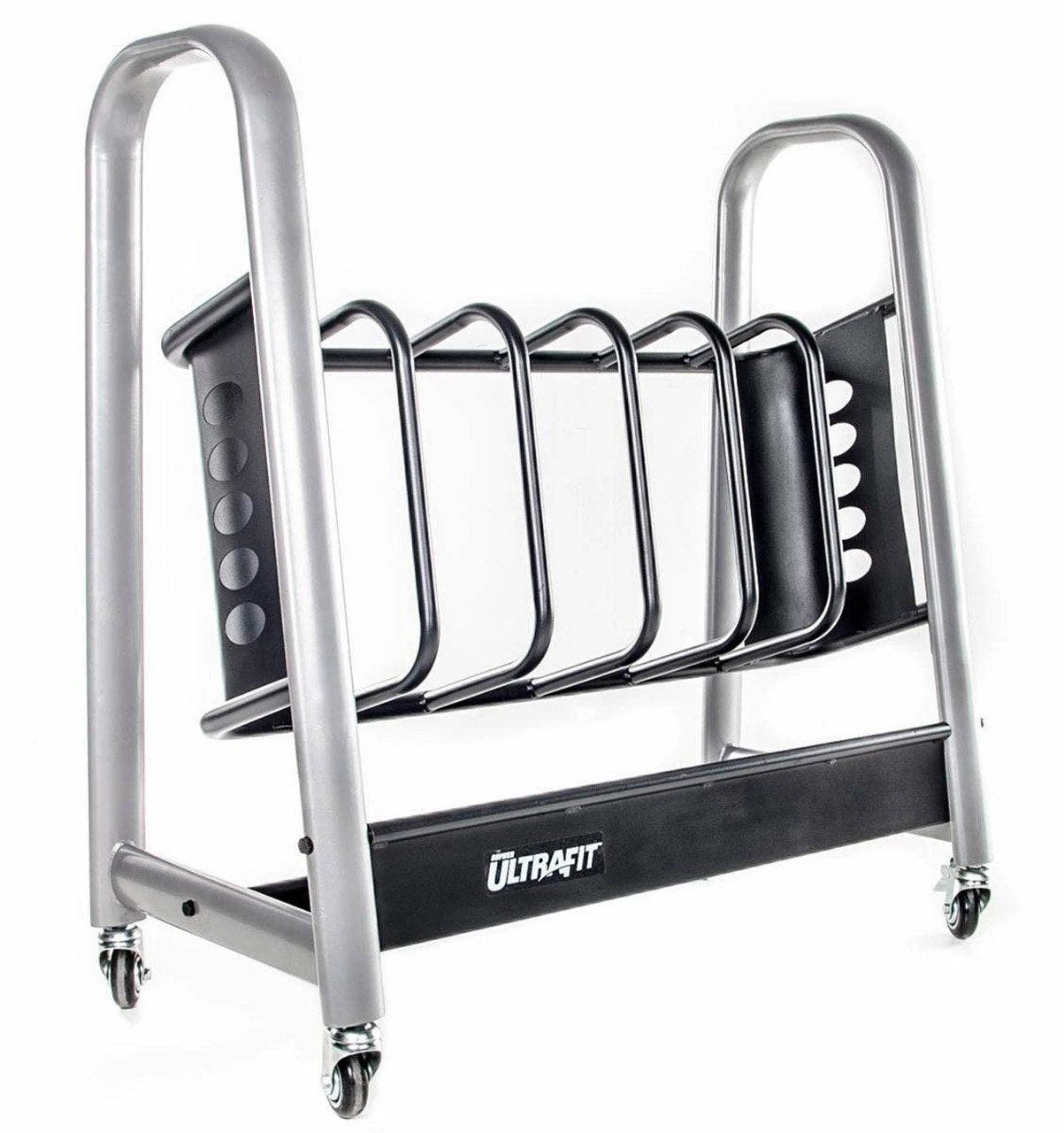 These sleek, upright bar storage racks are ideal for organizing UltraFit fitness bars by resistance load. They also allow students to easily take and return bars to their appropriate place. Racks are mobile for easy maneuvering to and from the storage closet. Durable powder-coated steel construction. Assembly required.