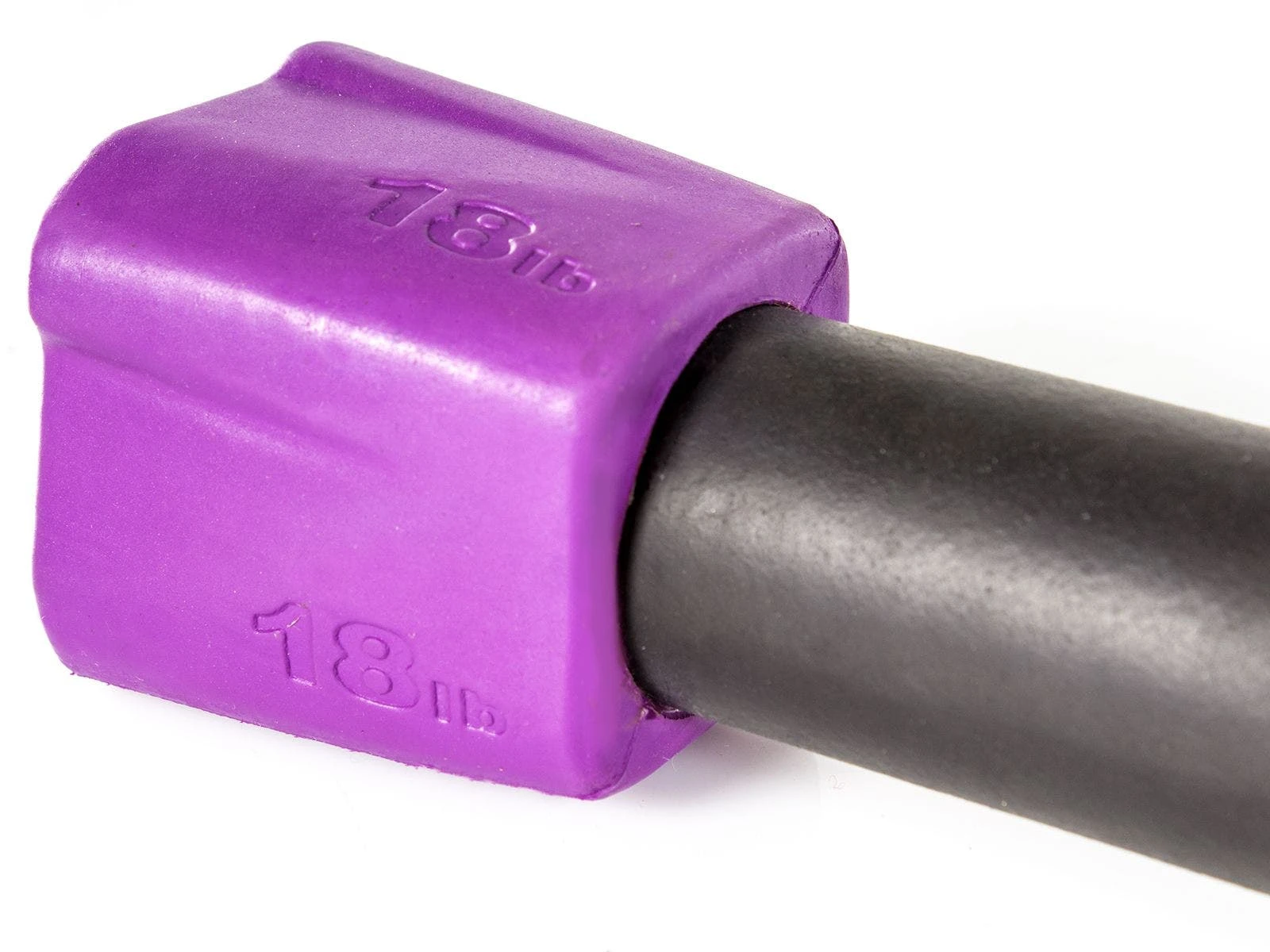 Squared end caps prevent rolling when bars are not in use. End caps are also color-coded, and a molded-in weight marker provides instant selection of the right bar.