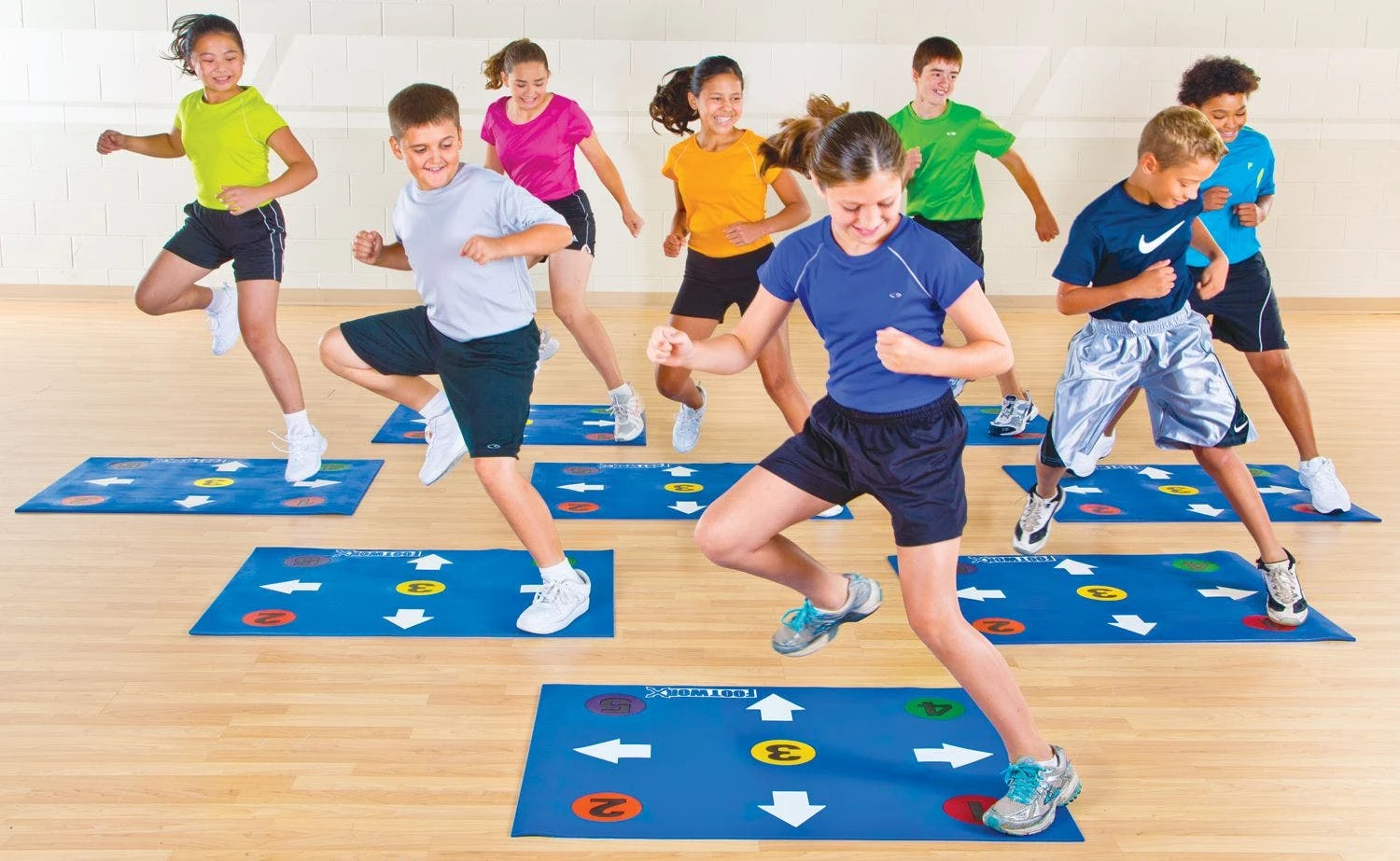 Traditional dot drill agility mats have 5 plain, white dots, but this is not your typical dot drill mat! The FootWorX Agility Mat features colored dots, multi-directional arrows, and numbers to keep students engaged with innovative activities and drills to enhance agility, quickness, speed, and reaction.
