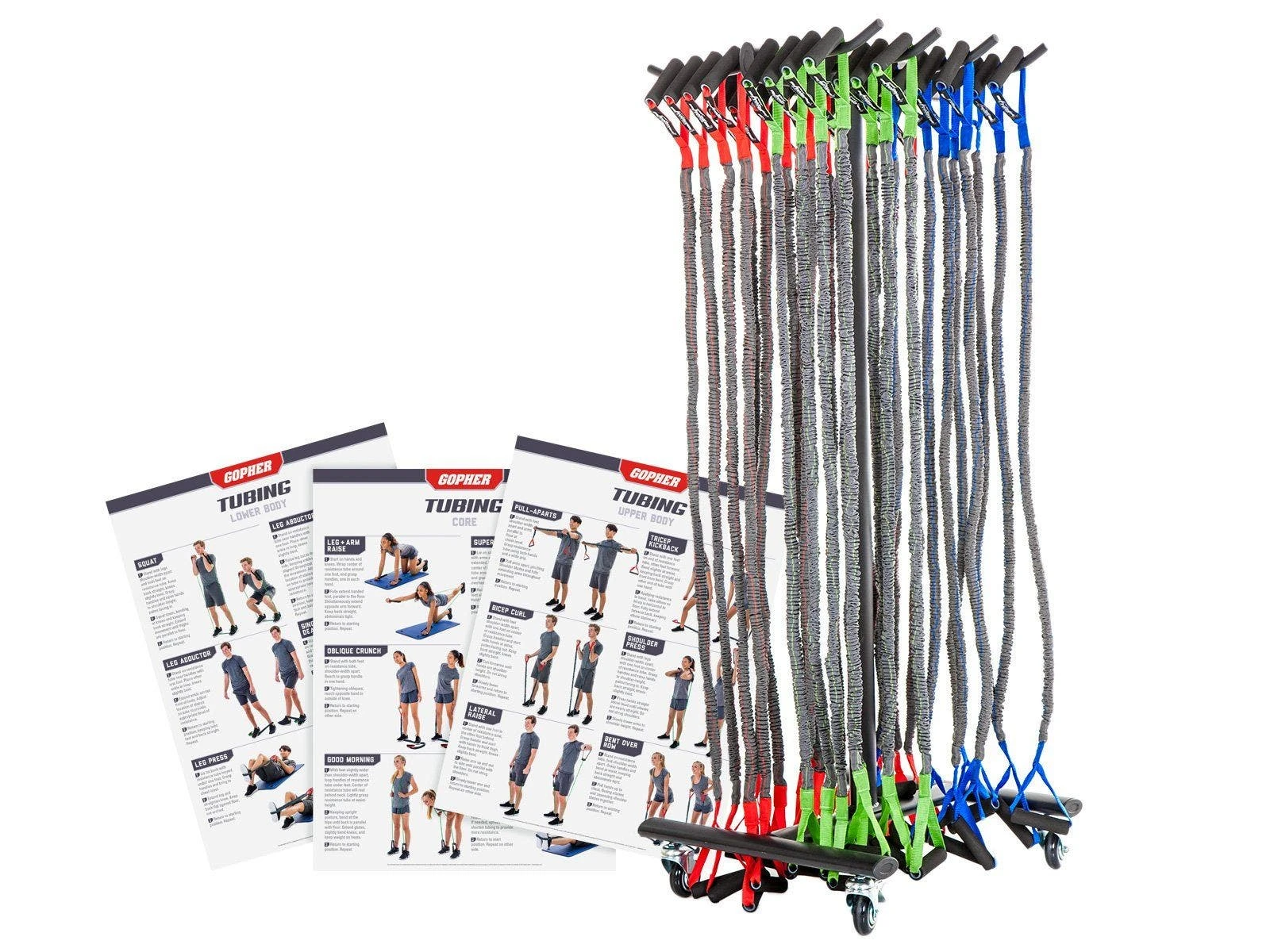 - Rubber-dipped latex tubing (60″L) is available with foam-covered handles.