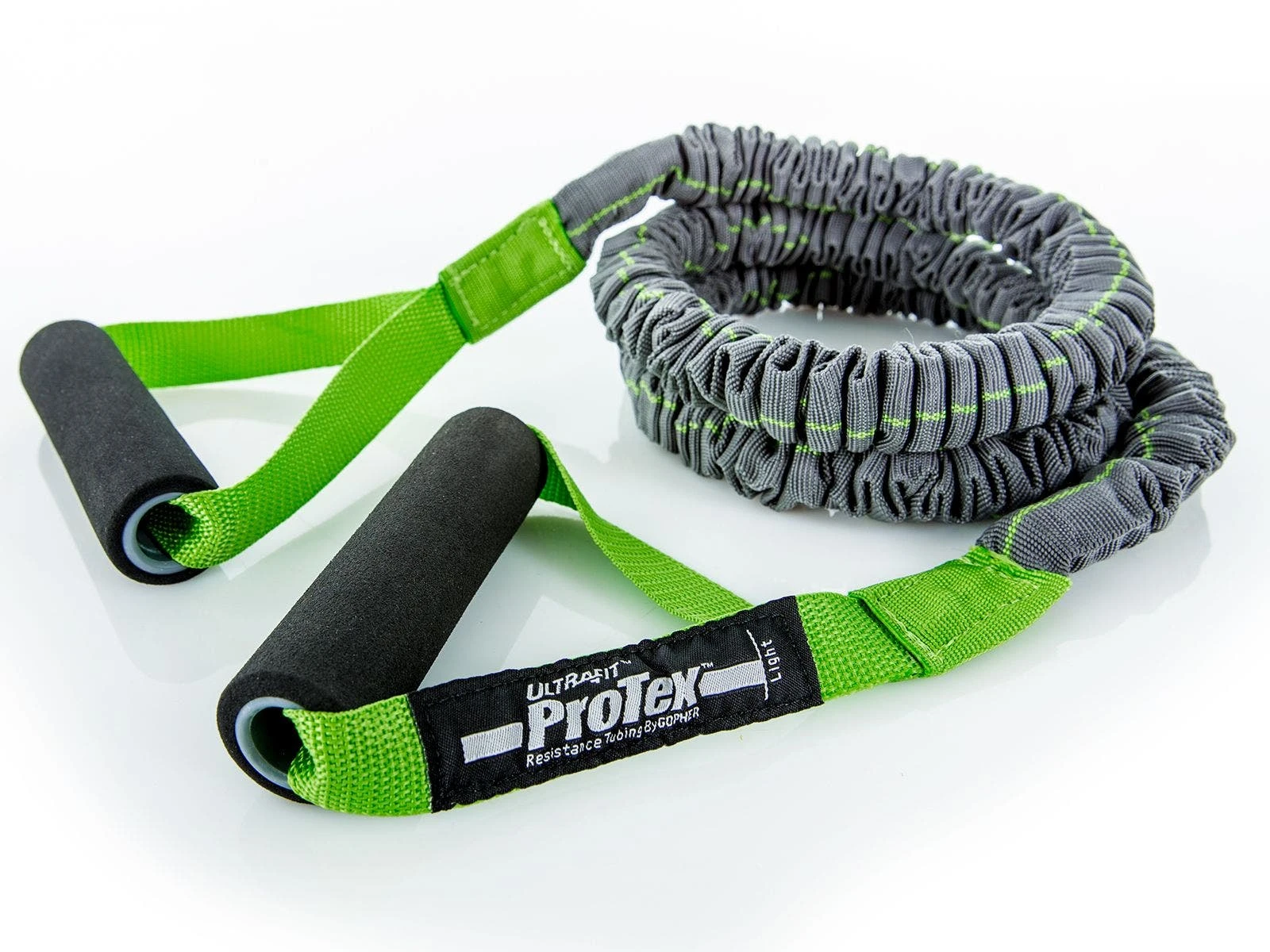 Want a heavy resistance tube that combines durability and safety? Seatbelt-grade nylon sheathing protects the tube from overextension and external damage. It also keeps users safe by preventing unlikely snapbacks.