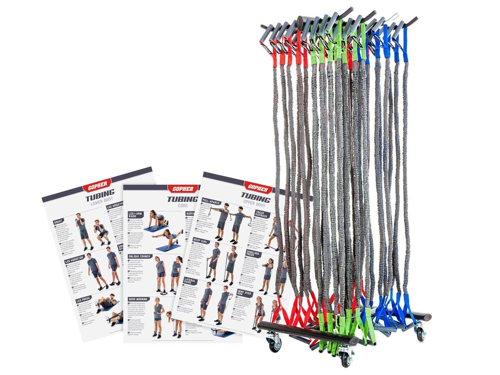 Seatbelt-grade nylon sheathing protects the tube from overextension and external damage. An all-steel cart makes it easy to store and transport the full set of tubes around your space. Printed instruction helps beginners advance their skills without direct supervision.