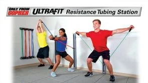 Complete Packs include 3 UltraFit Resistance Tubing Stations, 16 ProStretch Resistance Tubes (4 Light, 8 Medium, 4 Heavy), and an UltraFit Resistance Tubing Wall Rack.