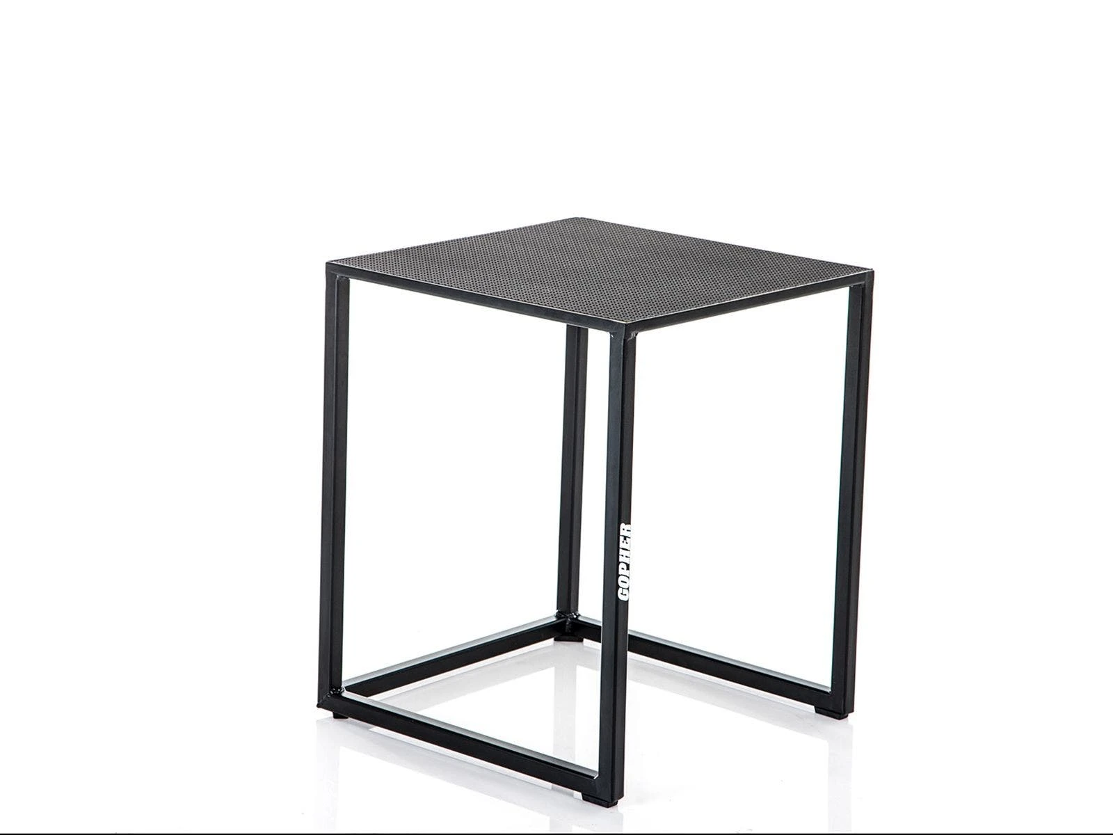 A 1” sq steel frame made with 11-gauge steel is incredibly compact yet durable enough for rigorous training in an institutional setting. A textured anti-slip platform ensures a safe landing. It’s also recessed into the frame, preventing it from peeling away. Rubber feet on the box keep it in place during use and protect floors from scratches.
