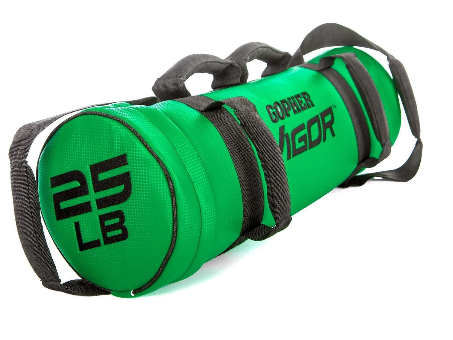 Vigor Sandbags feature a synthetic cover with reinforced stitching that is made to last through endless flips and hits. Yet the synthetic material is gentle to the touch on hands and skin, while foam backing and padded handles provide ample cushion for more comfort during use. Embroidered weight identifiers will not wear away or unravel over time.