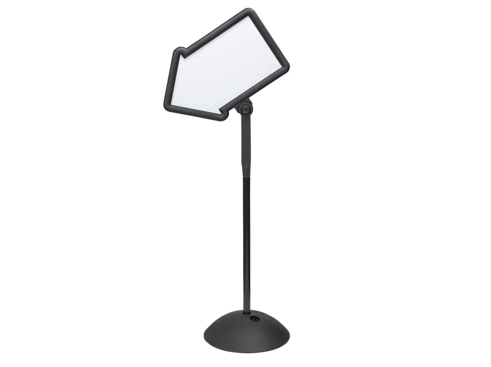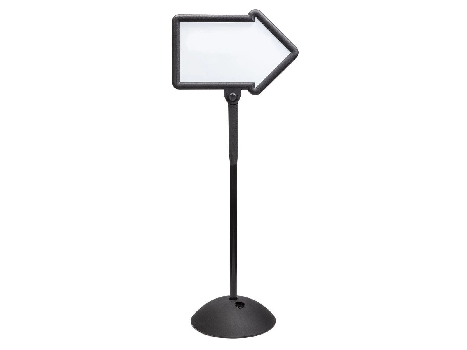 Direct people in the right direction with a convenient whiteboard arrow sign. Position the arrow so it’s pointing left, right, up, or down and write additional notes on the surface. Adjust the angle of the writing surfaces up to 45°. Black plastic frame has a wide, stable base that can filled with water or same for additional stability. Assembly required.