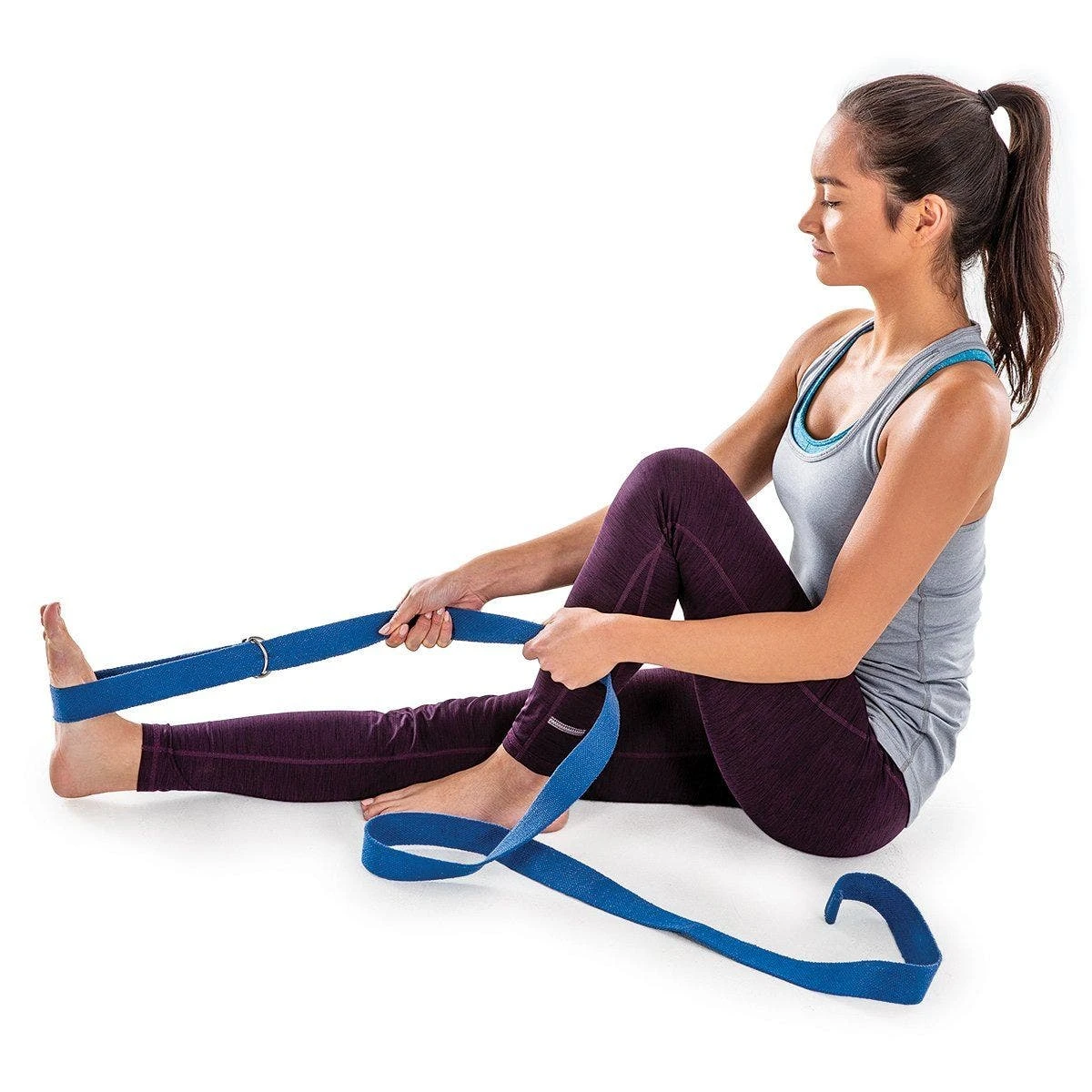Yoga stretches with straps allow for added support while holding difficult positions. Double D-ring adjustment allows for graduation of difficulty during balance poses. Users simply reduce the size of the loop as their practice grows. Comfortable cotton construction is softer than nylon and will not slip out of hands or off of feet during use. 8’L x 1½”W.