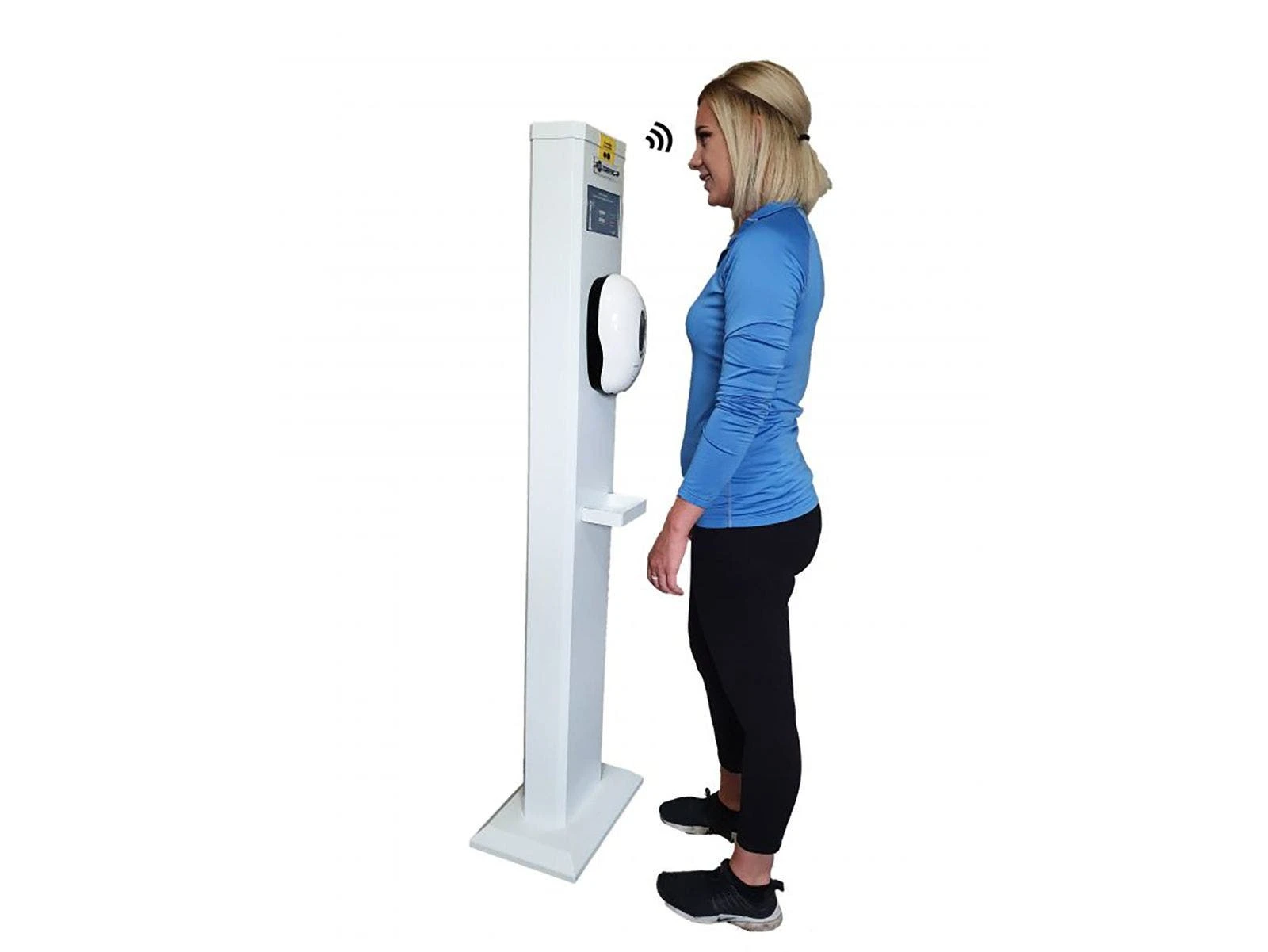 Users simply approach the scanner and place a forehead or wrist in front of the indicator for a temperature reading in 1 second. Automatic hand sanitizer dispenser included. Use at entry points to buildings or classrooms. Two-option reading makes it great for all ages.